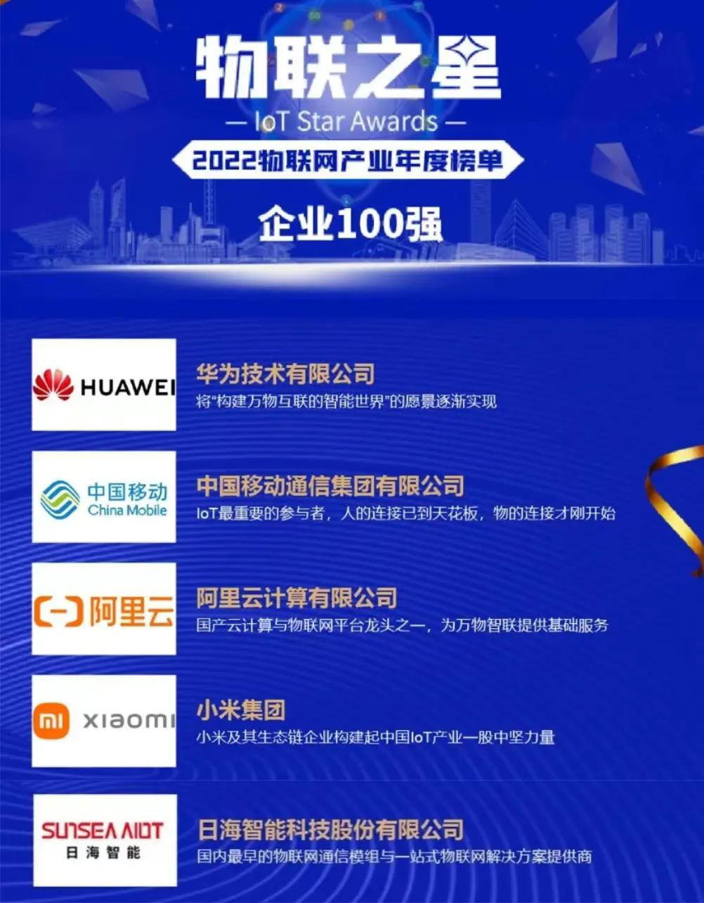 该年度榜单以公司业绩规模与人员规模较大且稳定、近三年业绩规模与净增长率表现良好、研发投入金额与占比较大并有行业影响力的新品发布、同时在物联网领域行业地位突出为四个评选标准进行严格、客观评选。飞速发展的物联网行业群雄并起,优秀企业不断涌现,米兰·(milan)-智能脱颖而出,与华为、中国移动、阿里云计算等知名企业齐头并进、共同成为中国物联网企业百强,背后是近三十年的实力积淀。